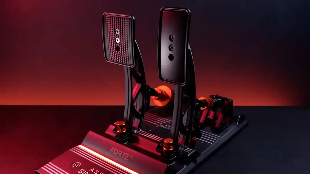 I chose the Asetek Forte pedals over the Heusinkveld Sprint pedals because of their price. Both pedals perform incredibly well, but the Forte pedals were a bit cheaper.
