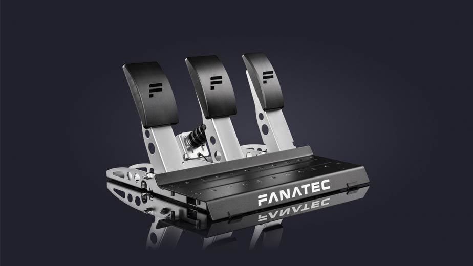 This Fanatec bundle includes the CSL Load Cell Pedals. This is a full three-pedal set with a throttle, clutch and a load cell brake pedal.