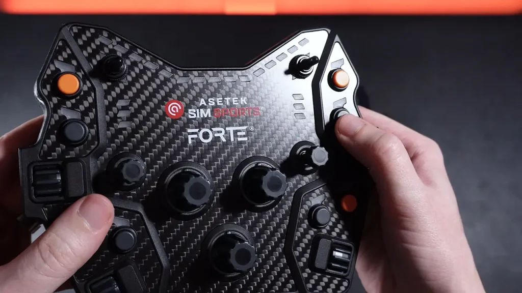 On the higher end of the market, Ascher Racing offers its own button box, which is much more premium than the Fanatec version but with a much higher price tag. Their hub costs around €/$600, and again, it has much less functionality than the Asetek versions.